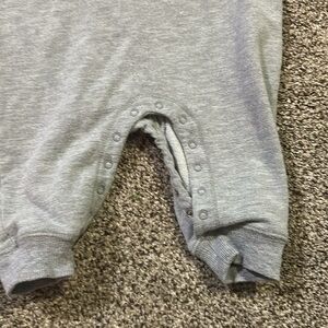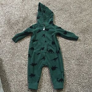 Adorable kids one piece set featuring a green dinosaur print and a gray piece with a red plaid hood. Perfect for cold days. Both have been lightly used and in great condition. Size 6 months.