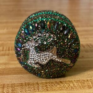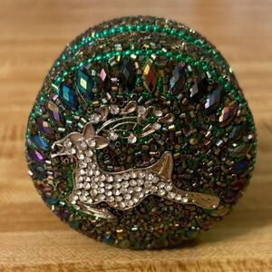 Green and Jewel Toned Beaded and Clear Rhinestone Reindeer Gift Box Small