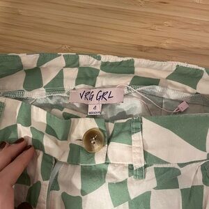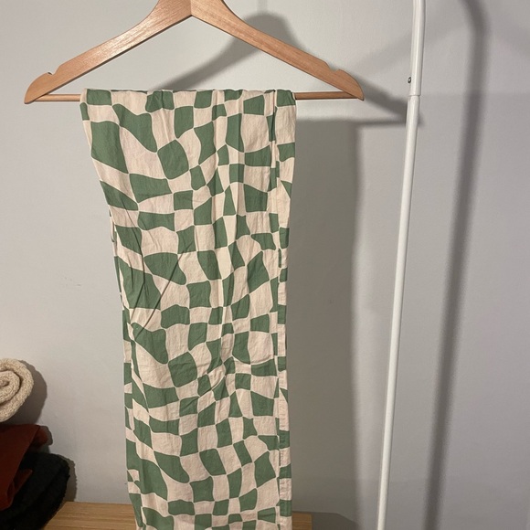 Green and light pink checkered set. Lightweight material. Super fun.