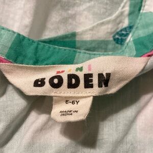 Charming girls dress featuring a delightful green, white and pink design. Perfect for playful days and special occasions. Size 5-6.