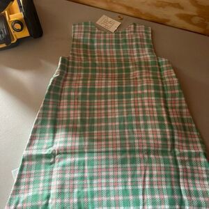 Charming green and pink plaid dress with button details. Perfect for any occasion.