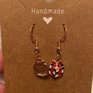 Green and Red Wrapped Boxed Presents Dangle Earrings