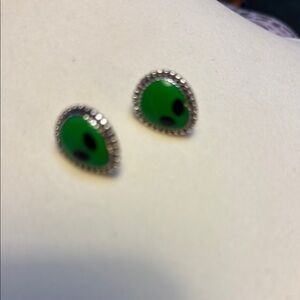 Elegant green and silver stud earrings perfect for any occasion. Add a pop of color to your outfit with these stylish accessories.