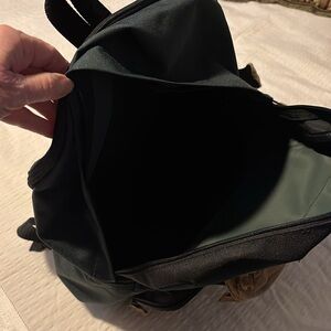 Stylish and durable, the men's backpack features a sleek green and tan design. Perfect for everyday use, it offers ample storage with multiple compartments.