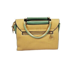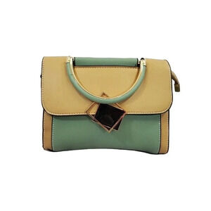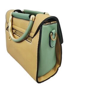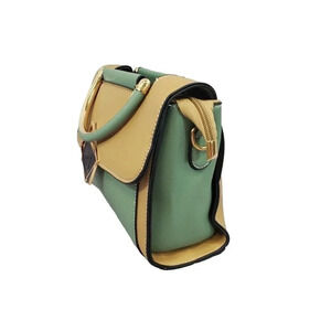Green and Tan Two-Tone Cross Body Purse With Golden Accents, Adjustable Strap