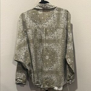 Green and White Button Down Shirt with Intricate Design