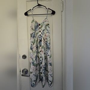 Embrace the casual elegance of this sleeveless sundress, featuring a charming buttoned front and a flattering sweetheart neckline. The green and white color palette adds a refreshing touch, making it perfect for resort wear. With its midi length, this dress offers a comfortable and stylish option for warm weather outings.