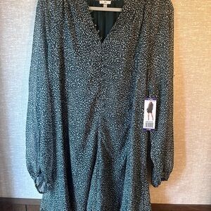 Green and White Long Sleeve V-Neck Sundress Long Sleeve NWT 2XL