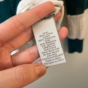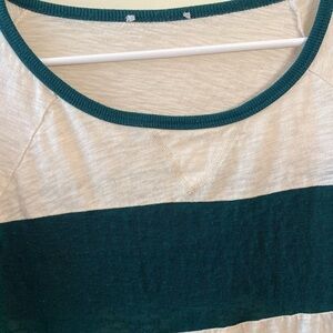 A striped green and white long sleeved top without tags. Approximately a size small.