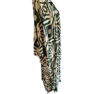 Stylish and comfortable, this green and white zebra print swim cover-up is perfect for a day at the beach or pool. Its lightweight fabric ensures a breezy feel.