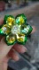 Stunning sparkly flower brooch with green and yellow petals. Perfect for adding a touch of elegance.