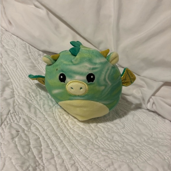Adorable green and yellow dragon plush toy. Perfect for cuddling and play.