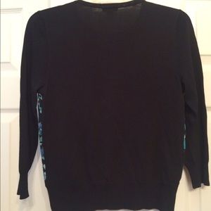 Three quarter sleeve black cardigan with chiffon floral front, black buttons, lightweight fabric, great condition