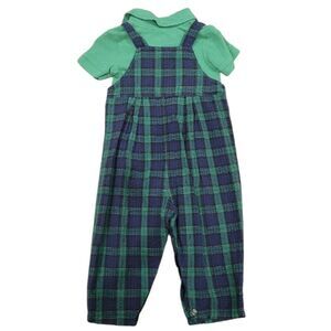 #heartstrings #plaid #casual #Oshkosh #embroidered #overall #classic #preppy #blue #green #textured #18 months #baby