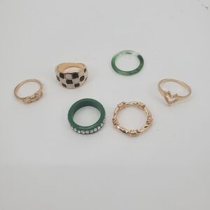 Green and gold stackable ring set assorted sizes size 7 and smaller