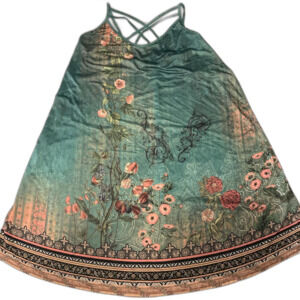 Green and pink floral dress with crisscross straps #whimsy #floraldress #fairycore