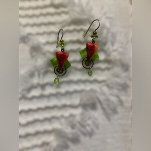 Green and red dichroic glass earrings