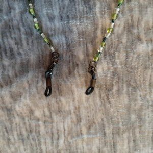 NWOT green and white beaded eyeglass holder necklace. Approximately 27" in length.
