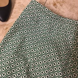 Elastic waistband with nice lines. Tapered leg hits me at the ankle. Fabric has some stretch. Great pant! EUC. Price firm.