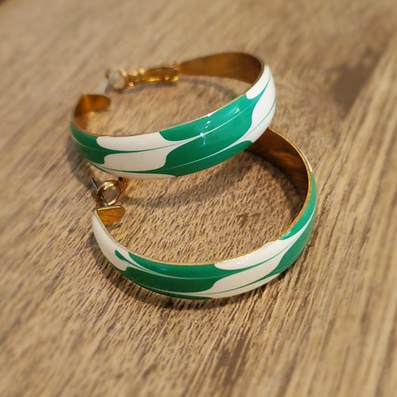 Large vintage hoops make a fun, vibrant splash. Roughly 1.5" diameter. Glossy finish. Gold backing.