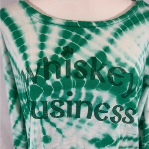Green and white tie dye “Whiskey Business” long sleeve knit top size medium