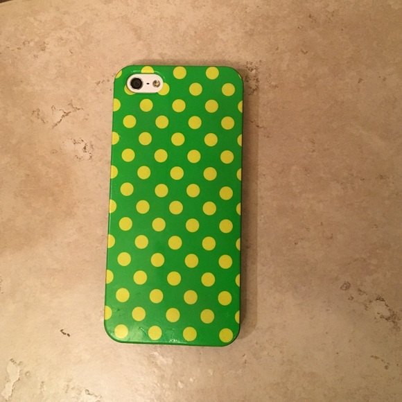 Green phone case with yellow polka dots. Great condition!! For iPhone 5/5s. NOT BRANDY MELVILLE just using the store for exposure