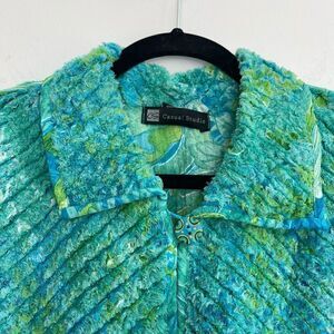 Green and Blue Diagonal Textured Button Down Shacket Size medium