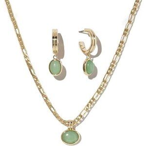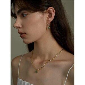 This gorgeous jewelry set includs hoop Jade earrings and Gold jade necklace, definitely brighten your everyday look.