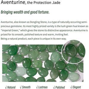 Gold plated,chosen for its strength and beauty, 18k gold has a lifetime of durability, anti-tarnish properties and also a hypoallergenic material;natural aventurine stone Jade, gentle and nice provides spiritual protection
