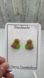 Adorable handmade earrings featuring a charming green and pink heart design. Perfect for adding a playful touch to any outfit.
