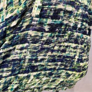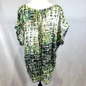 Green blue and white lightweight abstract print vneck top size 2X