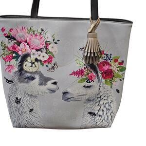 Green box art and Culture Tote bag LLamas 14 "x 13" Blue Pink