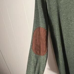 Green brown side button top like Boden Grace shirt elbow patch sz S