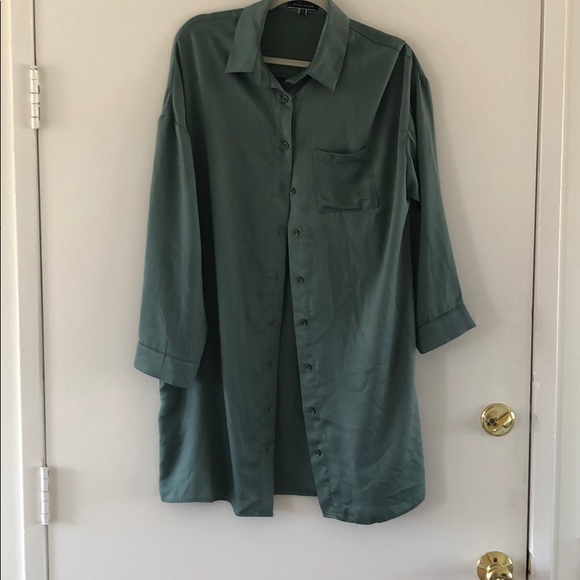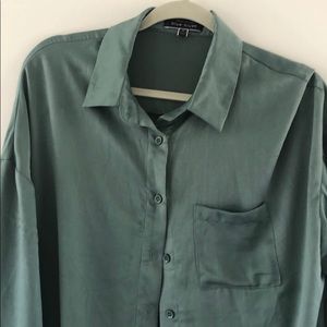 Oversized button up. Cute to wear with crop tops. Satin.