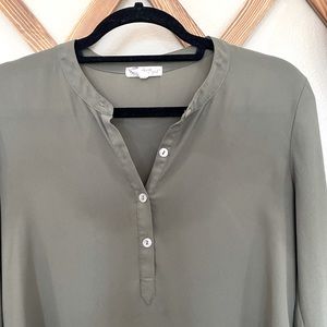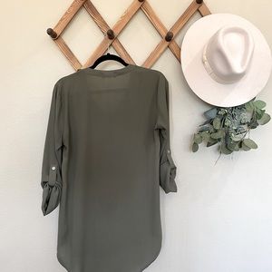 Long sleeve, tunic blouse that can button for a 2/3 look. Perfect for work!