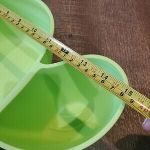 Green cactus-shaped serving tray with 3 cups Made by the Horizon Group. I purchased it at Target last summer. I never used it but sat on a shelf there are a few marks on the bottom, please see the last few photos. Posted photos with and without flash.