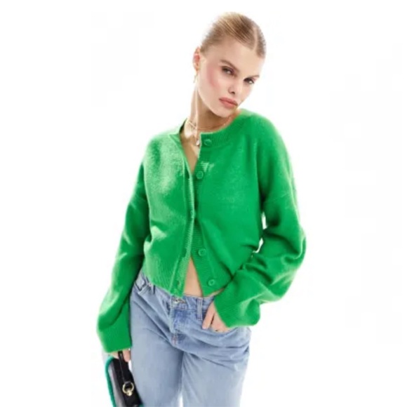 ASOS design green cardigan super soft crew neck