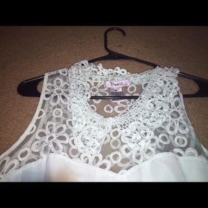 Looks white but is actually mint green with lace on top and pleating on the skirt. Only worn once for wedding.