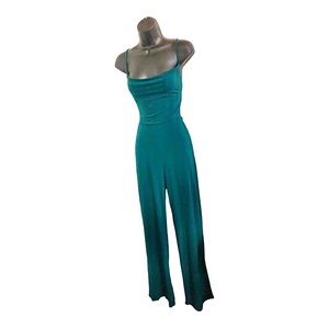 Forest Green cowlneck open back slinky fitted stretch back tie jumpsuit size medium new