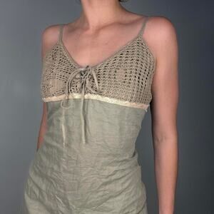 Green crochet lace top tunic mini dress European vintage