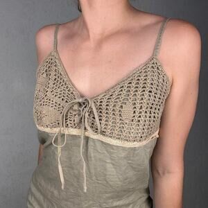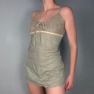 Green crochet lace top mini dress with frayed hem boho - eu 38 / fits like size small