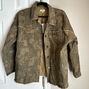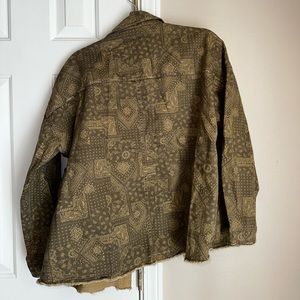 Paisley green and tan distressed denim style jacket. Bought from a boutique in NY and never worn. Slightly oversized fit.
