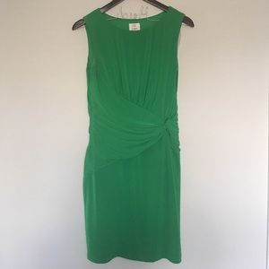 Apple green drapes at the hip, no sleeves back is the same cut in the neck zips in back.