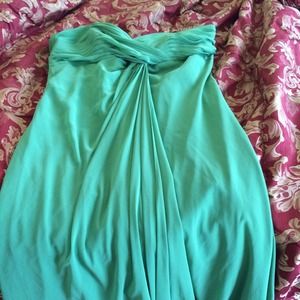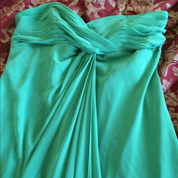This dress was worn once...it is in great condition still. It's a nice dress for weddings to attend, parties, or even a weekend night out This dress is green (very pretty color), strapless, with a zipper on the back. It's a very comfy dress. You can dress it up or down