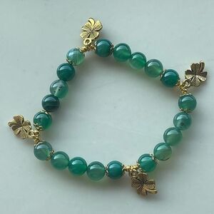 Green dyed agate 4 leaf clover ONE stretch bracelet NEW beaded reiki meditation yoga