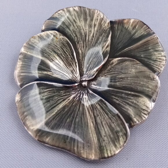 Beautiful pansy shaped pin done in green enamel over pewter.