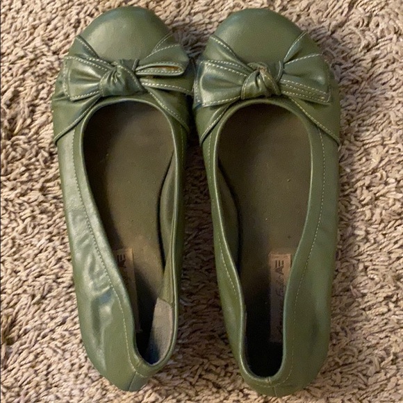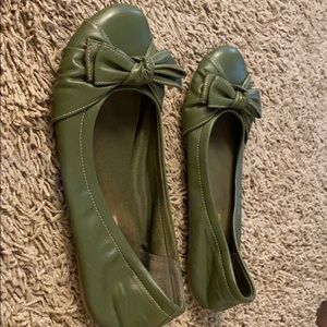 Used, worn many times but comfy! American eagle flats with bow tie. Green in color.
