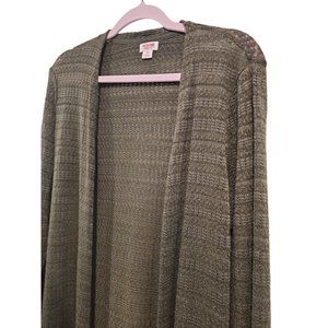 Description: Floor length, long sleeve, slight rounded open front cardigan