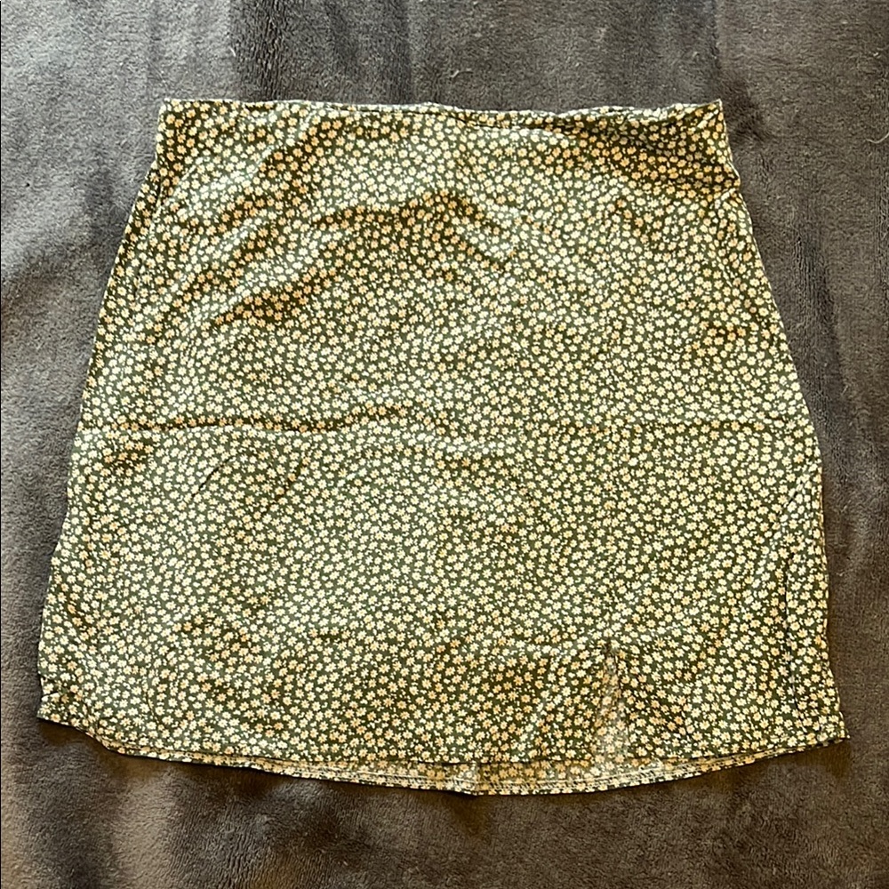 This green floral print skirt is so cute and comfy! Originally purchased in Barcelona, so although the tag says size large, it fits like a US X-small or small. Worn only a handful of times, however the slit on the front pulled a little, can easily be fixed.