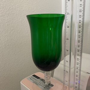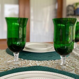 Vintage green glasses that will give your table a unique style, emerald green color with white steam.